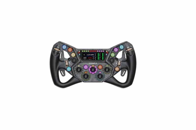 | Besonderheiten | Butterfly-Design mit umweltfreundlichem TPE-Griff, carbonfaserverstärkte Konstruktion, Schaltpaddles mit magnetischer Forged-Carbon-Konstruktion, Dual-Clutch-Paddles (für Doppelkupplung, Einzelkupplung oder frei belegbare Eingaben), Quick-Release-System aus luftfahrtzertifiziertem Aluminium | ||